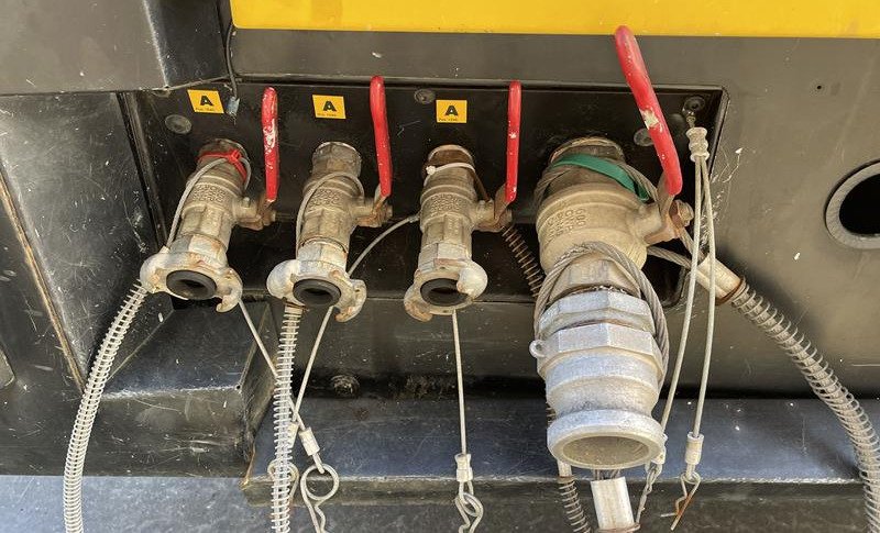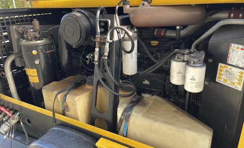 The machine is equipped with essential options such as an aftercooler, integrated road lights and a battery key, which increase ease of use and safety. The original color scheme and well thought-out dimensions (4.4 m long, 1.8 m wide and 1.60 m high) give the compressor a robust appearance and optimum mobility, supported by a fixed towing eye.
