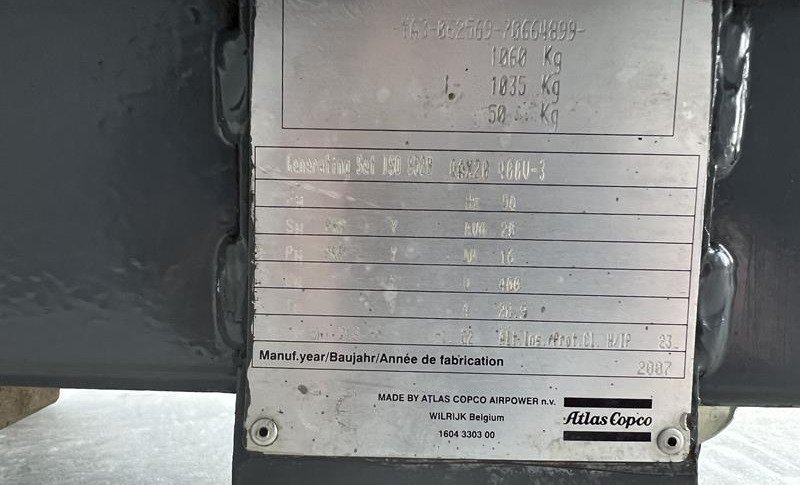 With a total of 5675 operating hours and a CE mark, this machine meets European safety standards. The original Atlas Copco housing and adjustable drawbar chassis make transport easy and provide extra flexibility on the shop floor.
