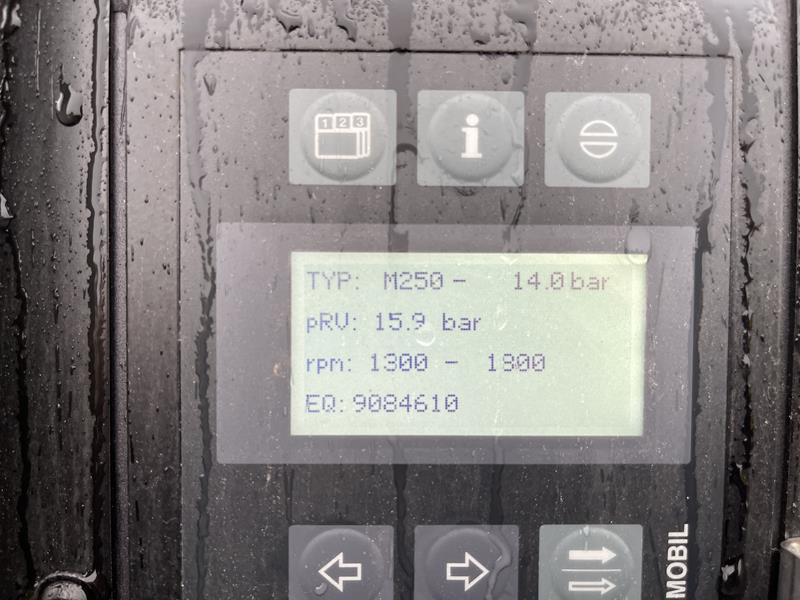 El KAESER M 250 - N está equipado con un potente motor Mercedes-Benz OM926LA de 210 kW de potencia. Esto garantiza un funcionamiento eficiente y fiable incluso durante un servicio prolongado. El compresor tiene una impresionante capacidad de 20 m³/min, lo que lo convierte en la opción ideal para talleres grandes y aplicaciones que requieren mucho aire comprimido. La presión de trabajo de 14 bar permite suministrar aire comprimido a máquinas y herramientas pesadas incluso en condiciones exigentes.