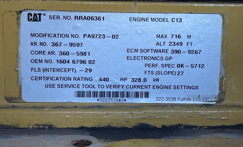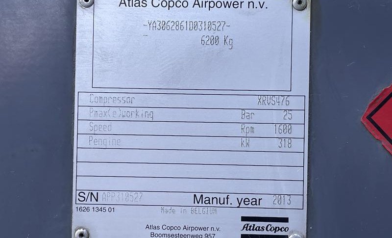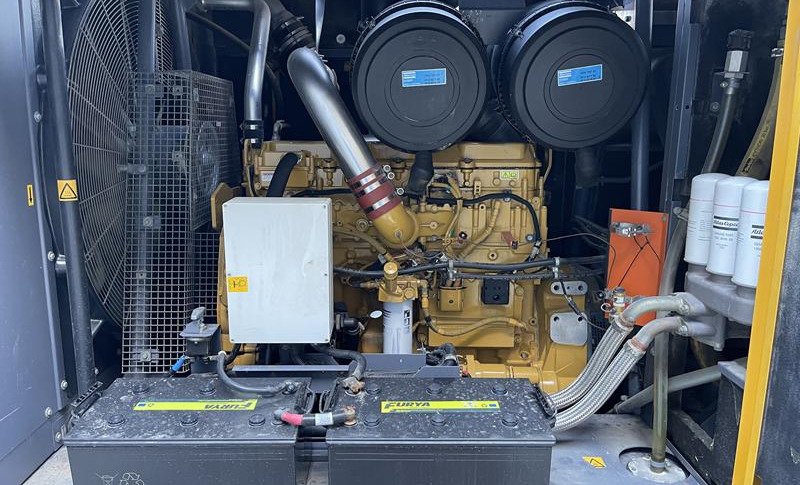 L'ATLAS COPCO XRVS 476 CD-N fonctionne avec un moteur diesel Caterpillar C13 d'une puissance nominale de 318 kW. La machine est montée sur un skid avec des ouvertures pour chariots élévateurs, ce qui rend cette version adaptée à la fois aux installations fixes et au déploiement mobile sur plusieurs sites.
