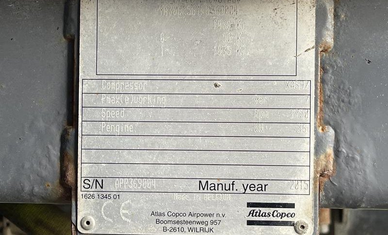 Atlas Copco XAS 97 DD-G pracuje pod ciśnieniem 7 barów i dostarcza 5,3 m³/min sprężonego powietrza. Napęd stanowi trzycylindrowy silnik wysokoprężny Deutz 2011 L 03. Maszyna ma mobilne podwozie z regulowanym wysięgnikiem holowniczym i jest przystosowana do transportu drogowego, co upraszcza transport między miejscami pracy.